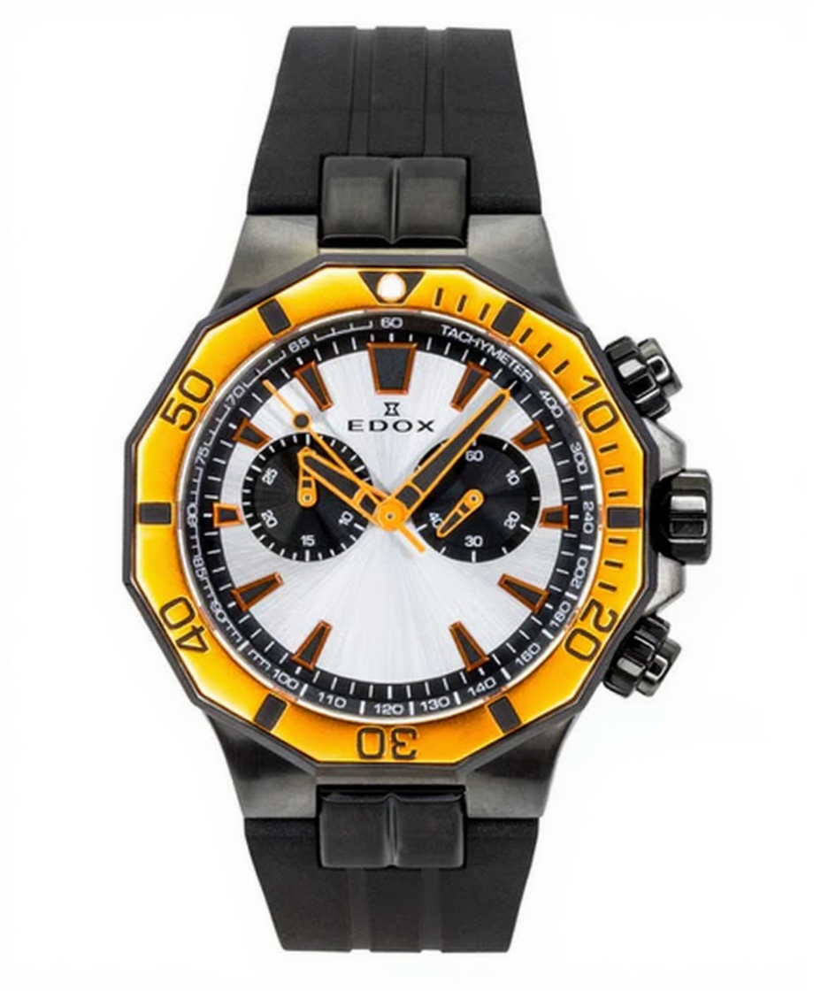Edox Delfin The Original Chronograph Rubber Strap Silver Dial Quartz Diver’s