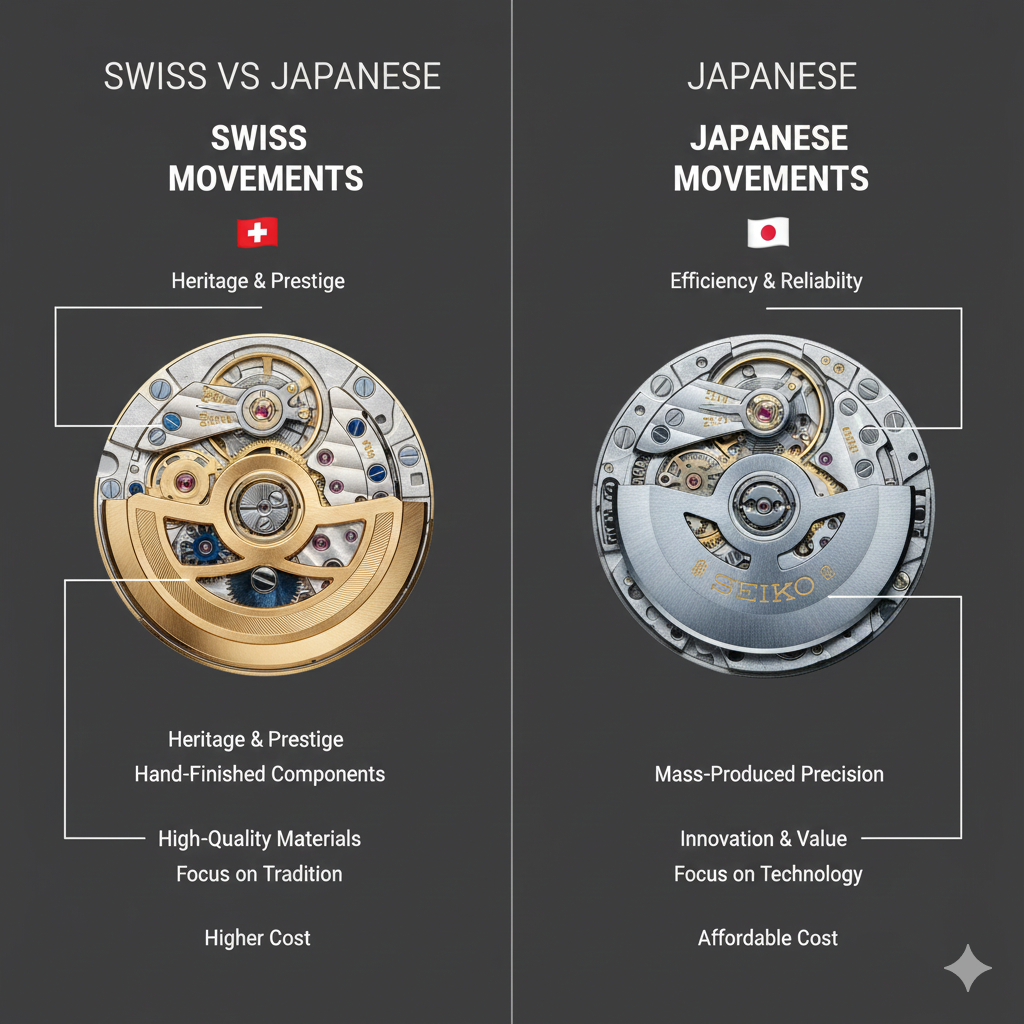 Swiss and Japanese movements represent two of the strongest traditions in watchmaking. Neither is objectively “better” — the right choice depends on what matters most to you.